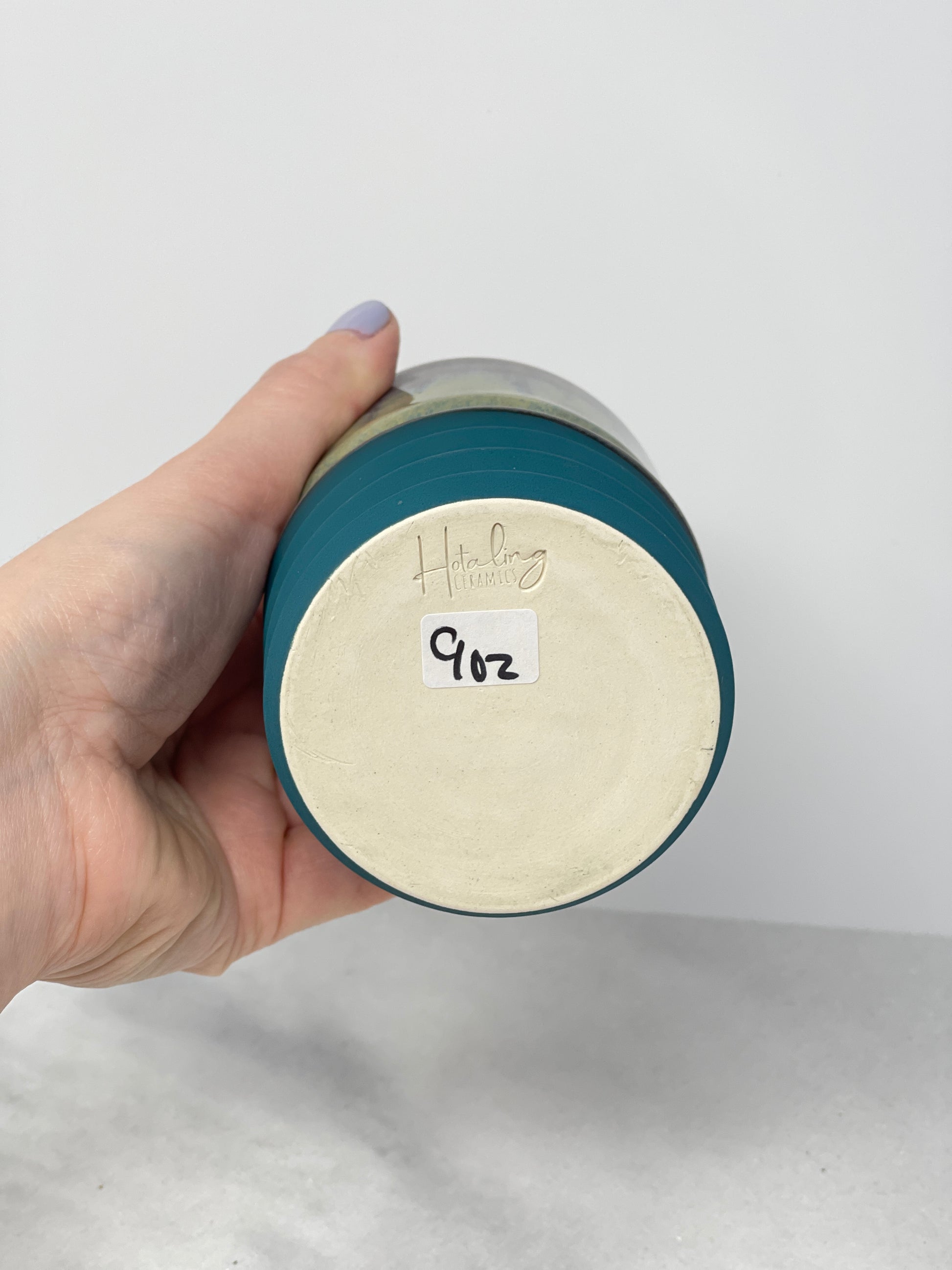 One-of-a-kind handmade stoneware tumbler with glass straw.